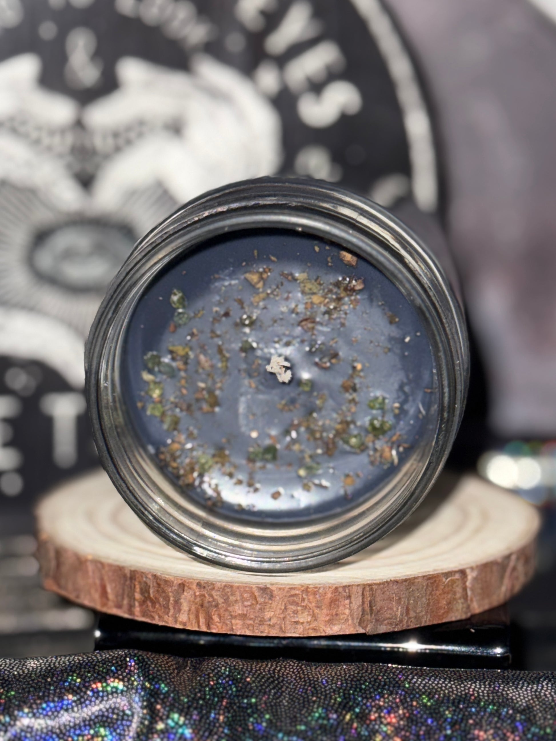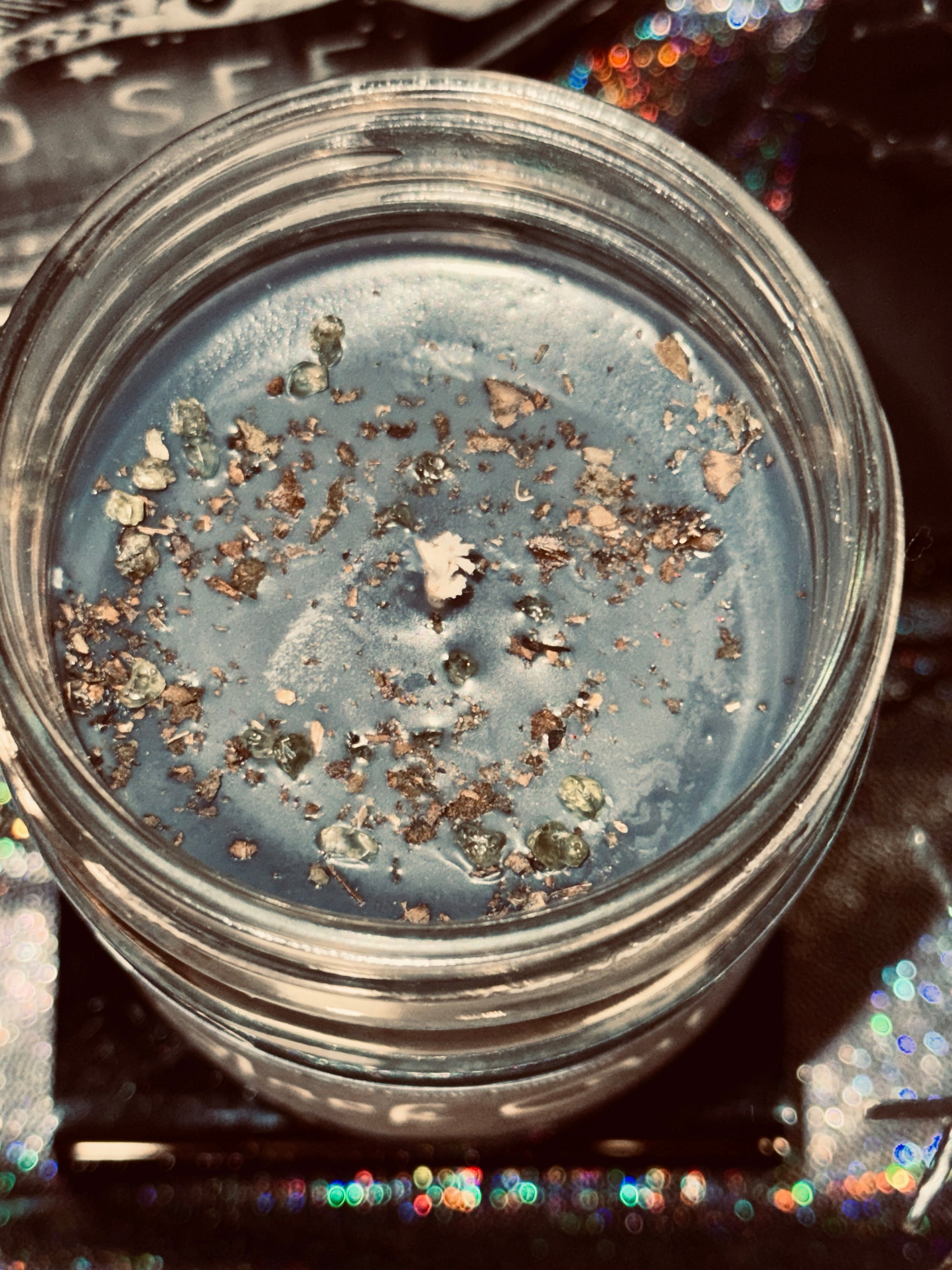 Some candles are created using bio-degradable glitter (non-plastic), dried herbs, dried flowers, and candle wax dye