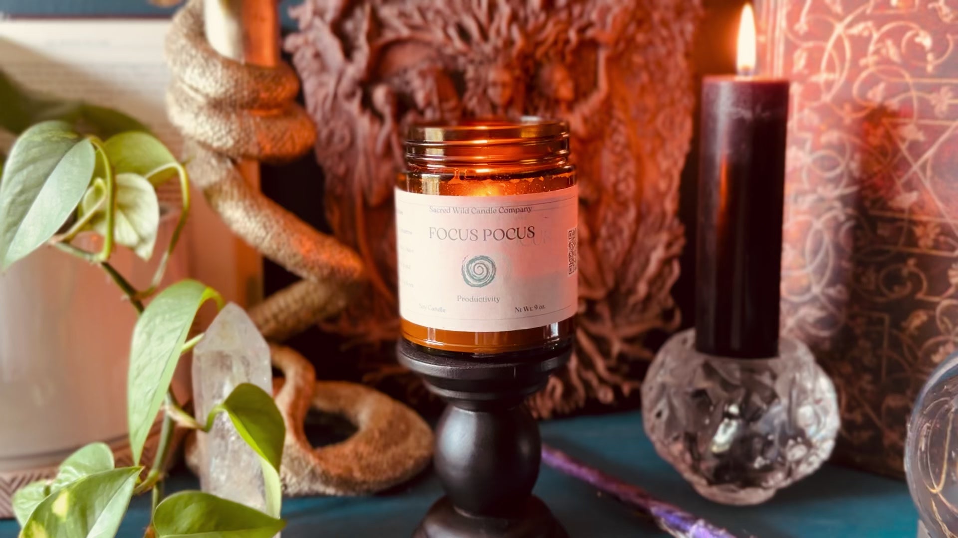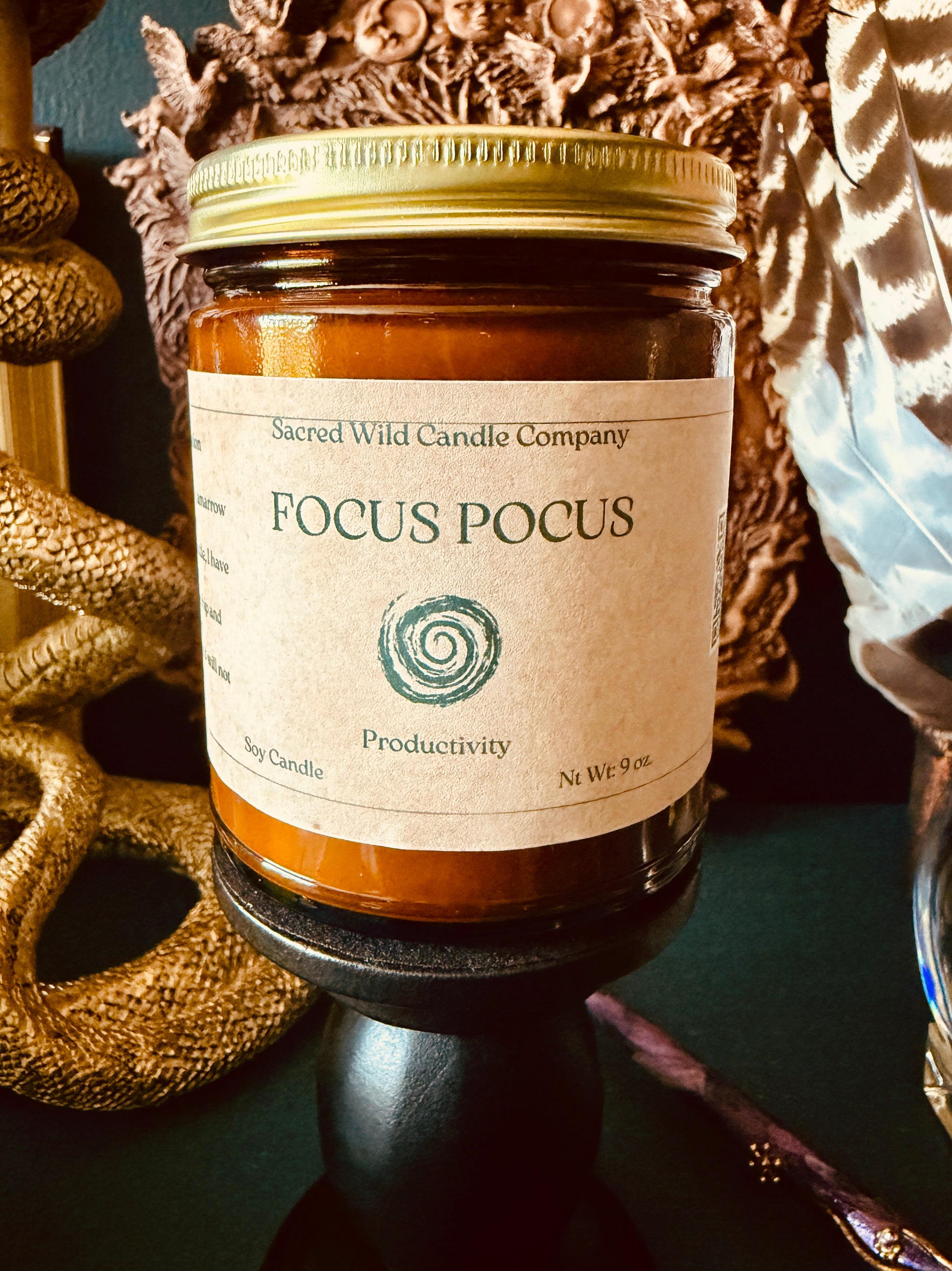 Focus Pocus is a soy candle scented with lush and woodsy, lakeside pine.