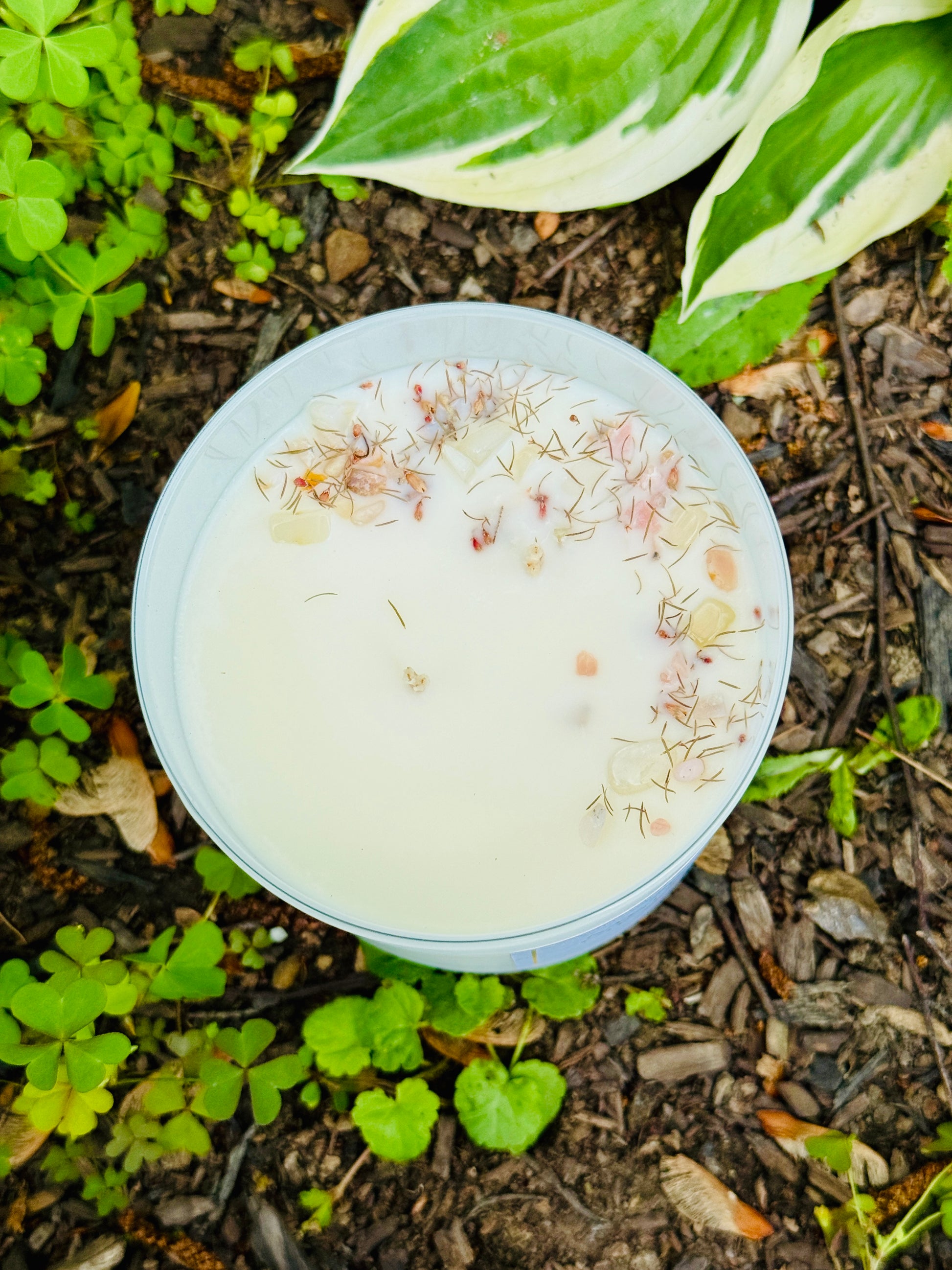 Some candles are created using bio-degradable glitter (non-plastic), dried herbs, dried flowers, and candle wax dye