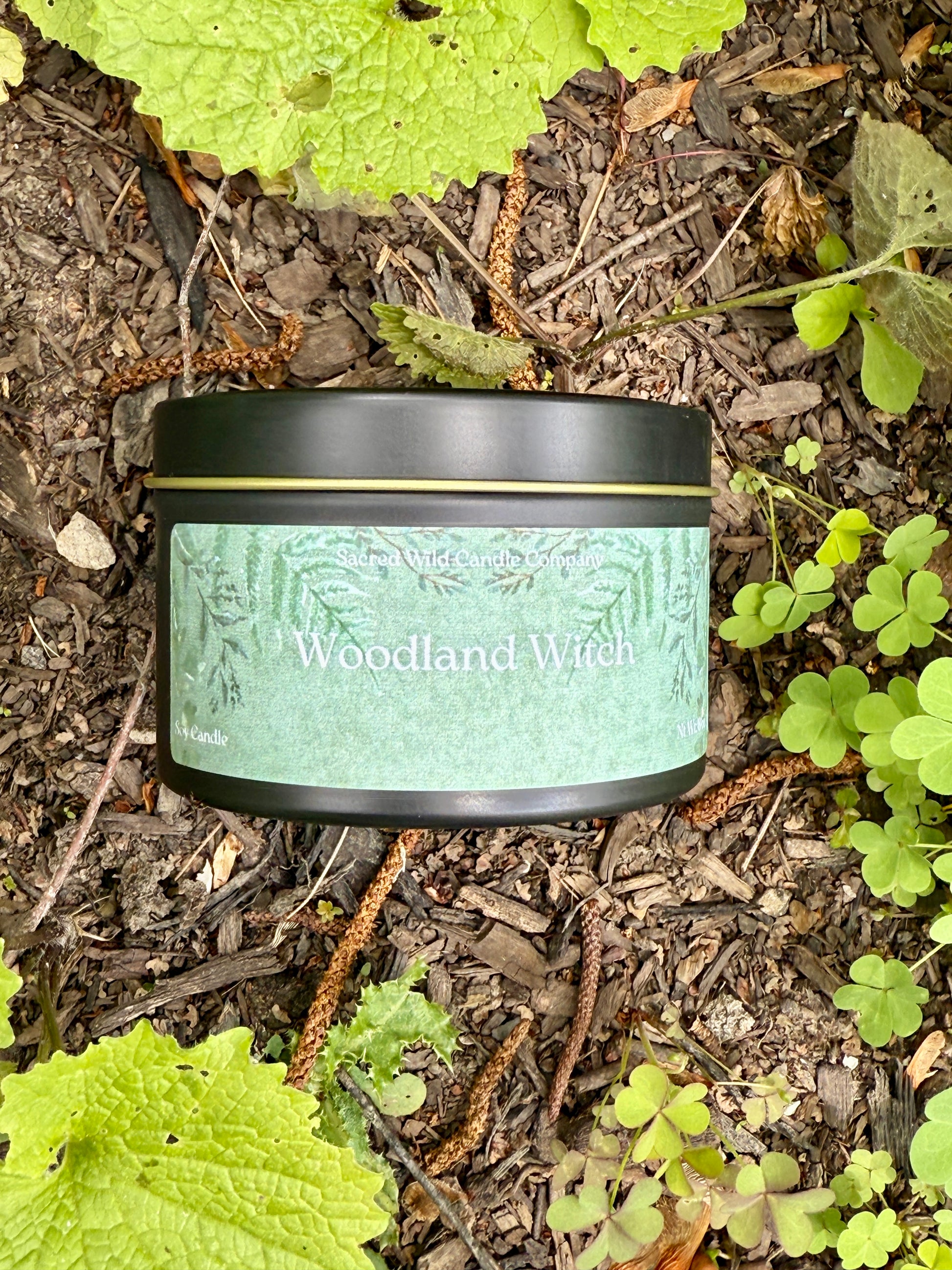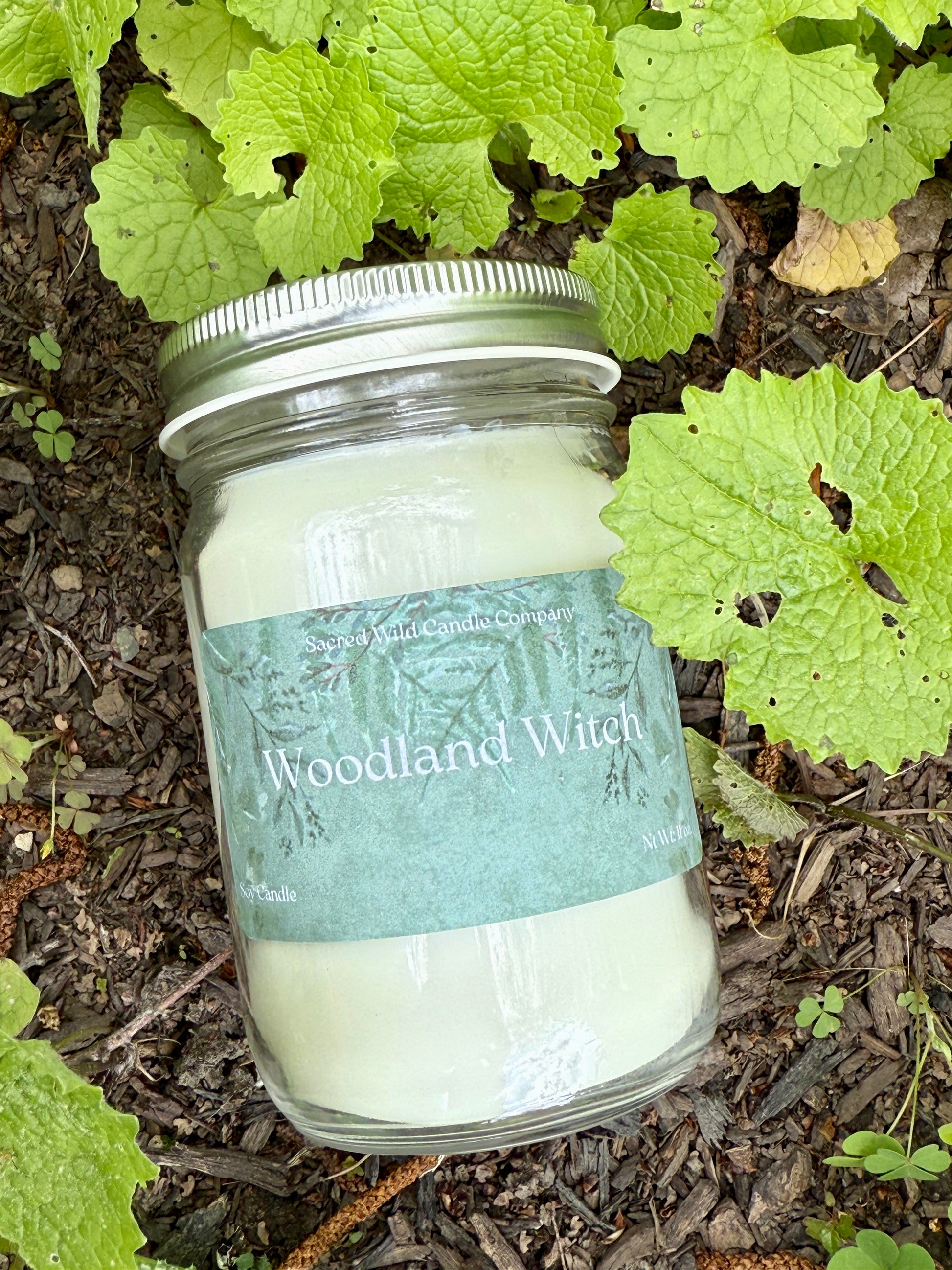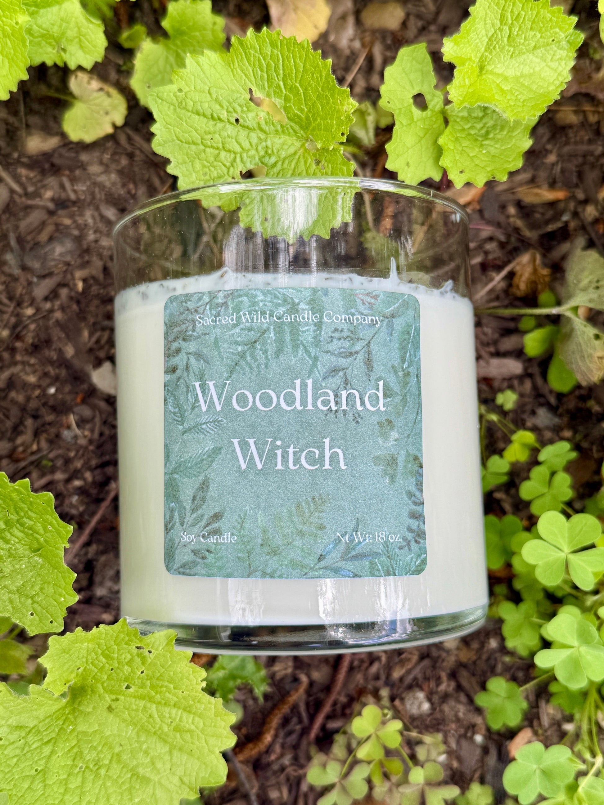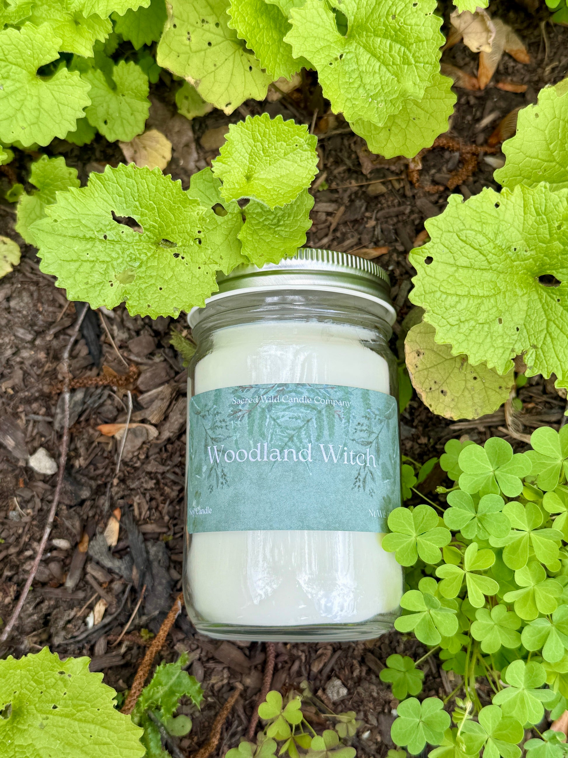 Scented with woodland foliage and decorated with labradorite, clear quartz, wild lavender, and dandelion root.